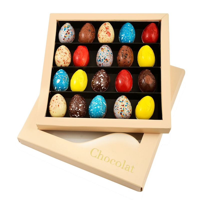 Suntem siguri ca nu poti rezista unei ciocolate belgiene in forma de oua de Paste. De aceea, iti recomandam Les Oeufs Chocolat 200 g. Iti garantam ca sunt total diferite fata de tot ce ai incercat pana acum, deoarece sunt produse si modelate in laboratoarele furnizorul oficial al Casei Regale a Belgiei, Herman van Dender.