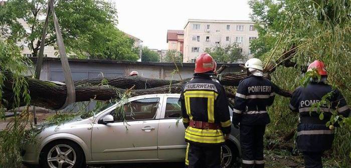 O furtuna violenta a distrus 125 de case din Timis, o primarie si o scoala. Copacii au fost smulsi si au cazut peste masini.