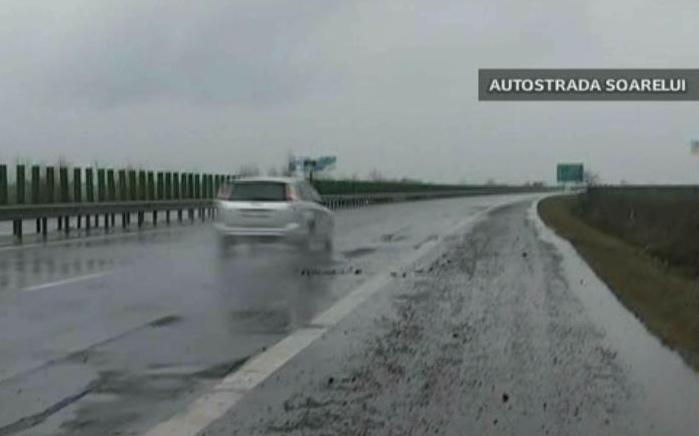 Este prapad pe Autostrada Soarelui! Ce-au cârpit muncitorii intr-o zi, s-a distrus dupa numai câteva ore de ploaie. Soferii fac slalom printre gropi pe un drum de mare viteza! Urmatoarele imagini ar trebui sa-i faca pe drumarii nostri sa intre in pamânt de rusine!