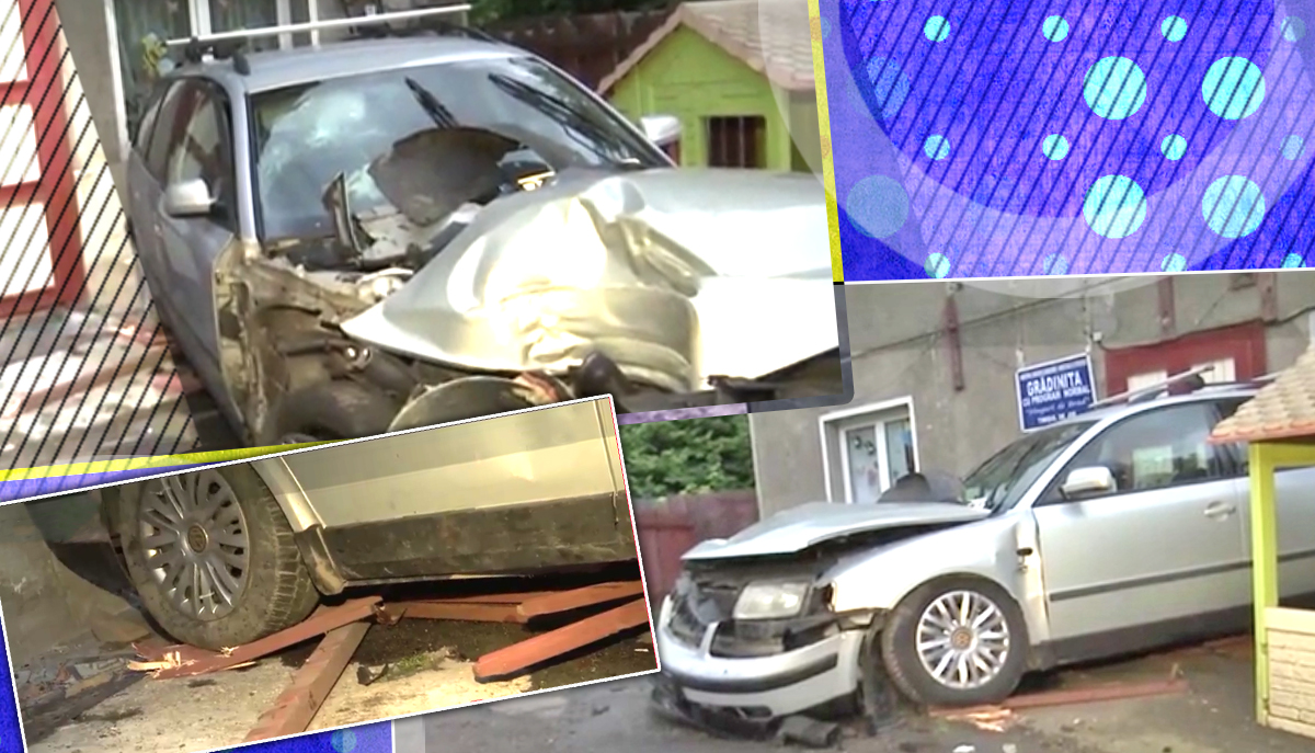VIDEO - Prăpăd pe DN 1, în apropiere de Predeal. O șoferiță vitezomană s-a înfipt în fațada unei grădinițe, după ce a pierdut controlul volanului