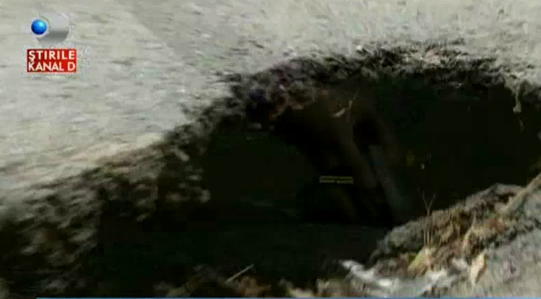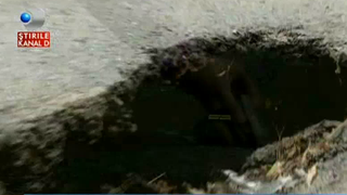 Uite-asa descoperim groapa in care camera de filmat incape cu totul… Sau suita de gropi, la pachet. 15 metri de asfalt si cratere cat vezi cu ochii.
