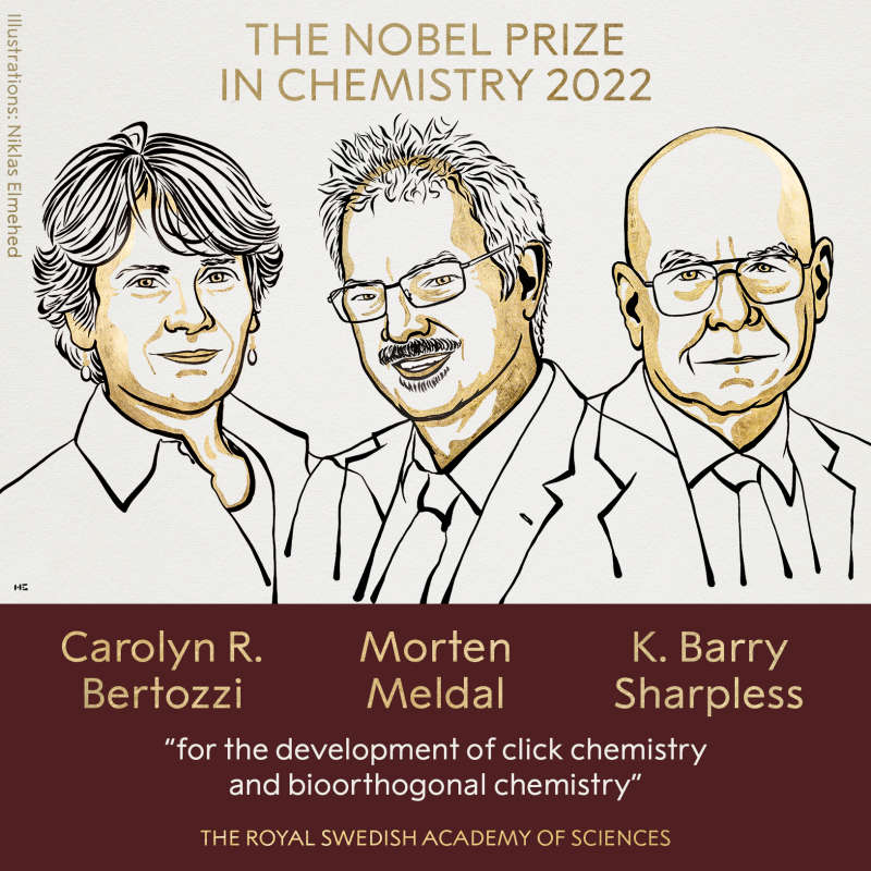 Premiul Nobel pentru Chimie 2022 a fost câștigat de cercetătorii Carolyn R. Bertozzi, Morten Meldal şi K. Barry Sharpless.