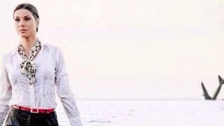 In imagine, o stewardesa iese cu bagajul de mana din mare, iar in zare se vede un avion prabusit in apa.