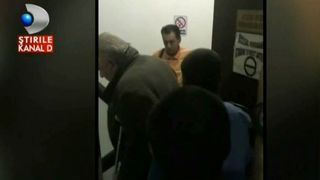 Nicusor Constantinescu a fost saltat de jandarmi pe 20 mai, in miezul zilei, din spital, si a fost transportat pe targa pana in holul institutiei.