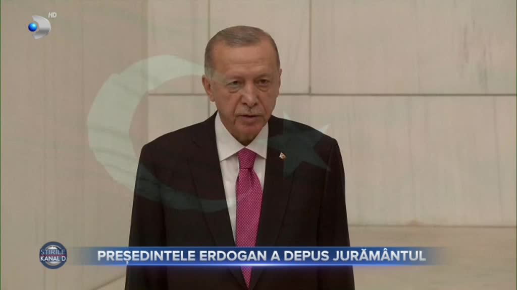 Stirea "Președintele Erdogan a depus jurământul" difuzata in cadrul grupajului informativ Știrile KANAL D din 3 June 2023.
