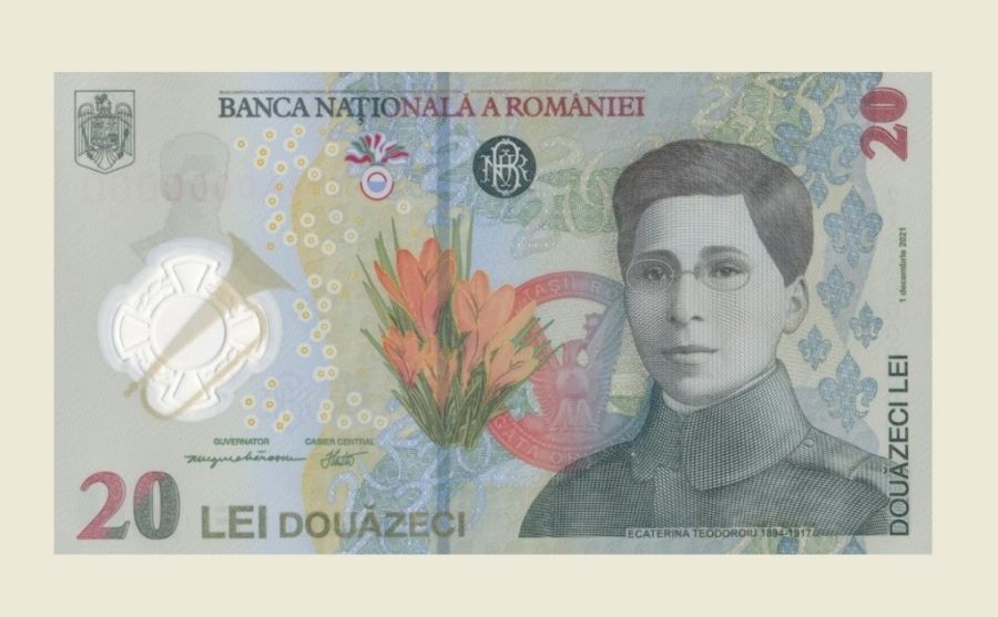 Prima bancnotă pe care este imprimat chipul unei personalități feminine, Ecaterina Teodoroiu, cu o valoare de 20 de lei, este pusă în circulaţie de miercuri, 1 decembrie.