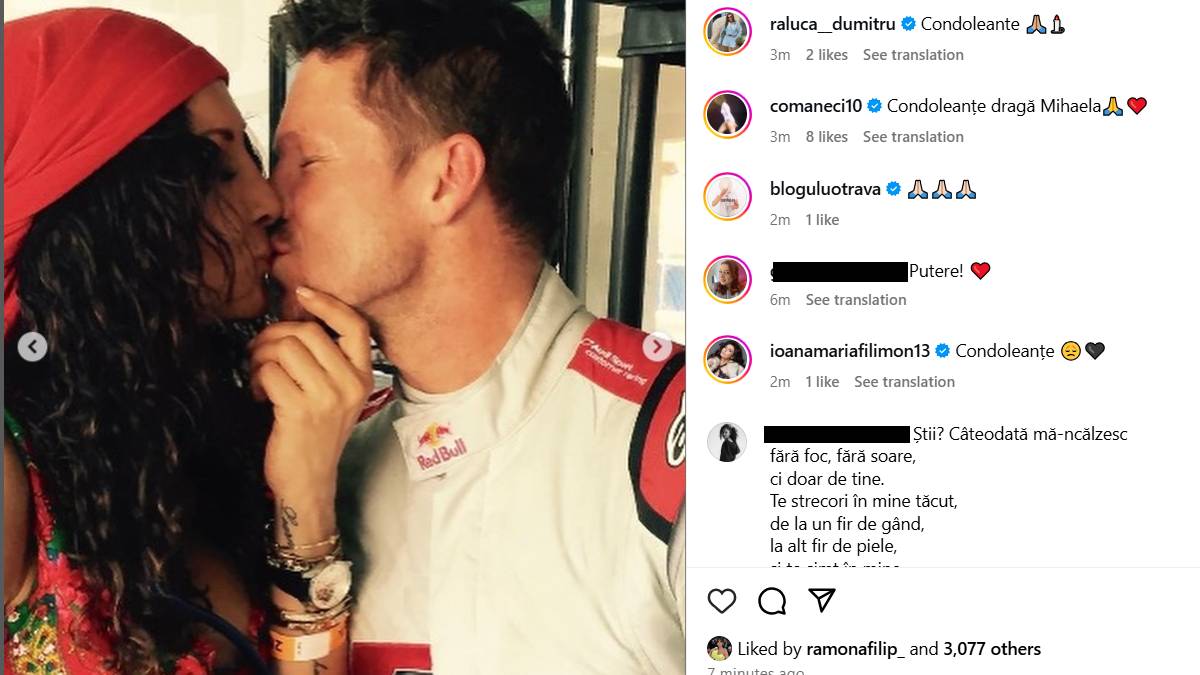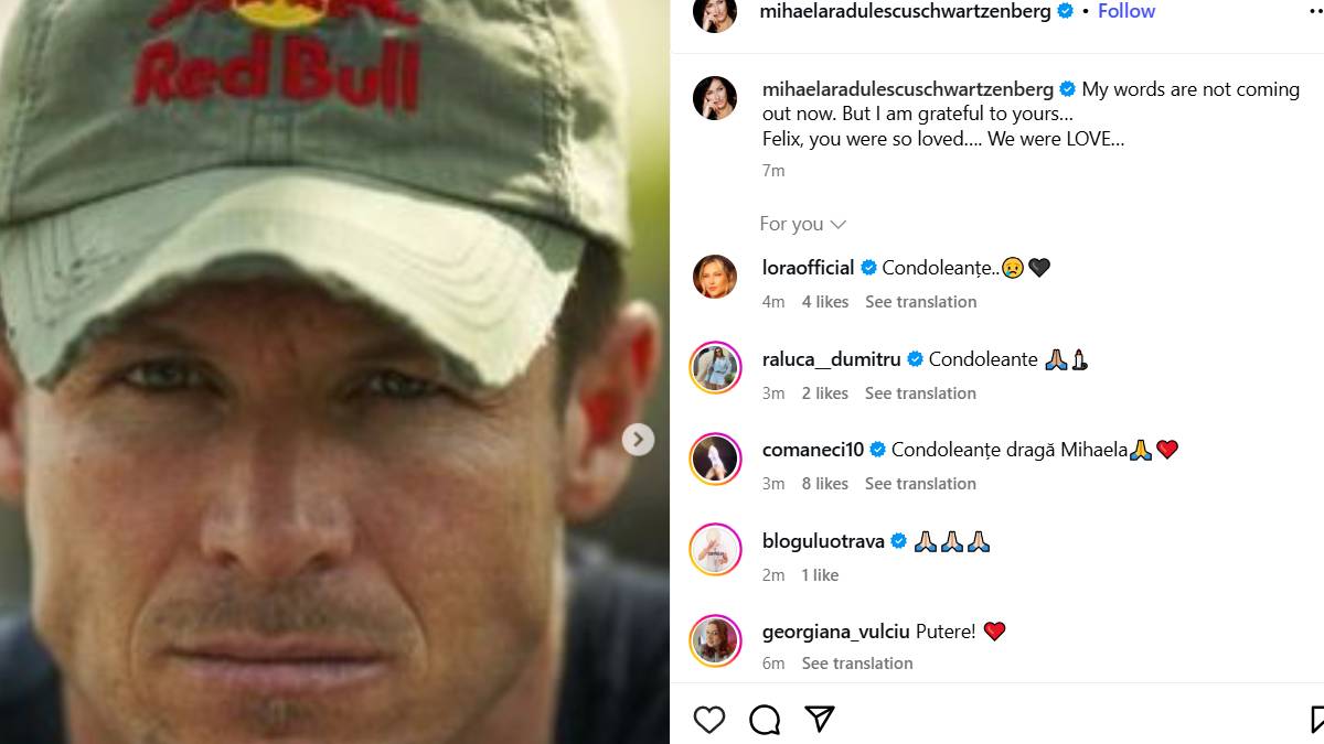 "Nu-mi vin cuvintele acum. Dar sunt recunoscătoare pentru ale tale. Felix, cât de iubit ai fost! Noi am fost IUBIRE", este traducerea aproximativă a mesajului Mihaelei Rădulescu.