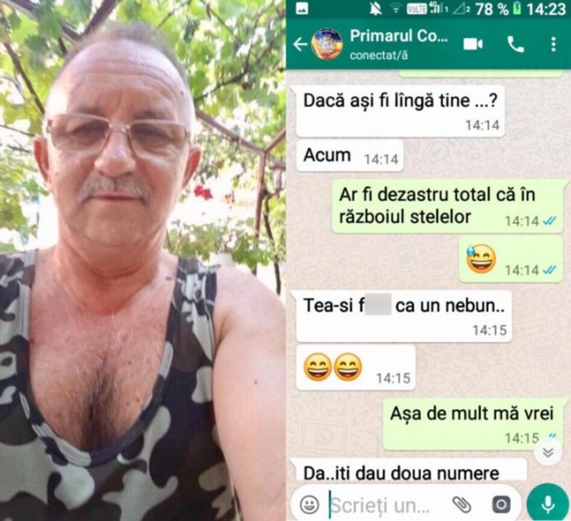 A devenit celebru primarul din Dolj care a făcut propuneri sexuale pe facebook. Constantin Cârcimaru, primarul comunei Coțofenii din Față, județul Dolj, este acuzat că a poftit la amor pe rețelele sociale și i-a făcut propuneri indecente unei femei, căreia i se lăuda cu experiența sa în arta amorului. „Arata-mi p… te rog”, „Te f… de te rup. Nu mă laud… am experienţă”, „Abia aştept să intru în tine”, sunt doar câteva din mesajele pe care edilul le-ar fi trimis femeii.