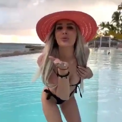 Alexandra de la Puterea dragostei s-a pozat într-un costum de baie negru, sexy atrăgând cu siguranță multe priviri și a început să danseze în fața camerei pe ritmurile lui Nicolae Guță.