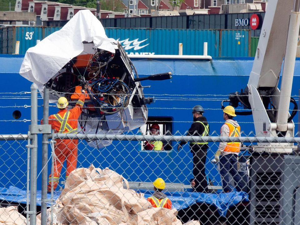Resturile submarinului au fost descărcate de pe nava Horizon Arctic la debarcaderul Gărzii de Coastă Canadei din St.
