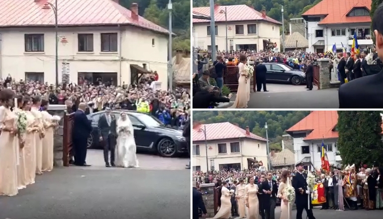 Sute de persoane s-au adunat la Biserica Sf. Ilie din Sinaia pentru a-i vedea pe cei doi tineri care astazi se cununa religios. Sub privirile rudelor, domnisoarelor de onoare si prietenilor, cei doi au ajuns in curtea bisericii.