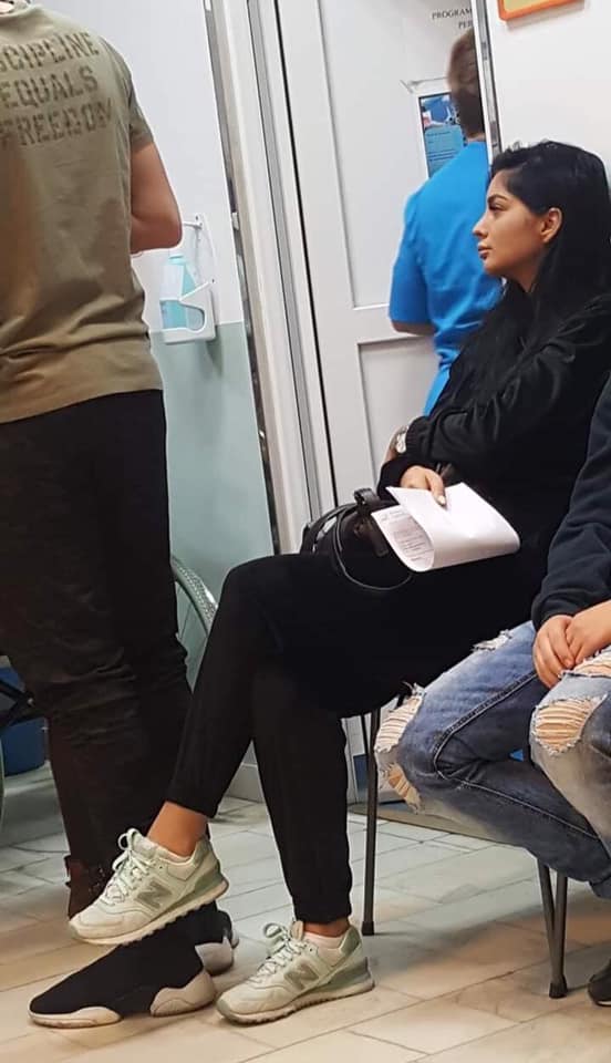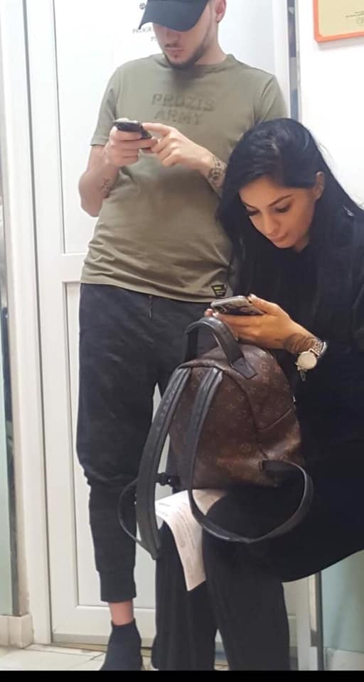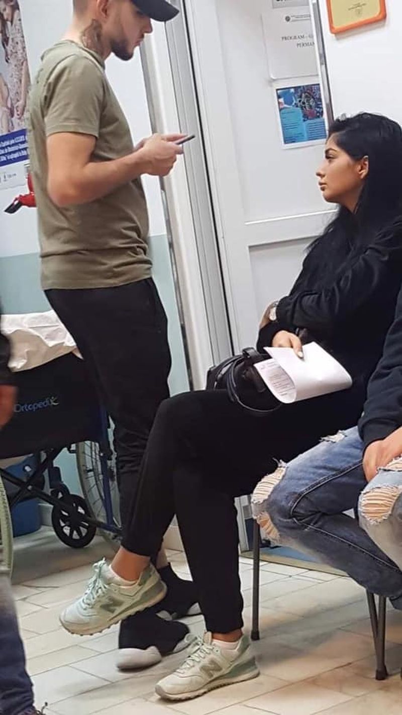 Simina Loica a fost surprinsă în timp ce aștepta pe scaun să intre la doctor. Alex Zănoagă părea vizibil agitat la medic.