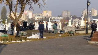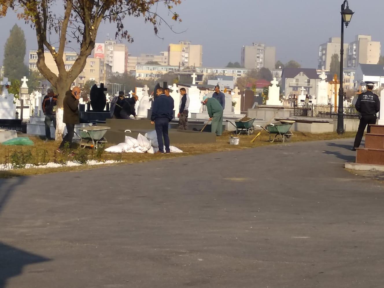 De altfel, aleile cimitirul erau pline de muncitori care făceau curat pentru ca totul să arate perfect atunci când va ajunge cortegiul funerar.