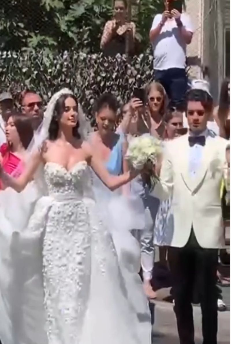 Ianis Hagi a ales să îmbrace un sacou alb și pantaloni negri. Mirele a făcut o schimbare de look pentru cel mai mare eveniment din viața sa. Ianis s-a tuns scurt, după o perioadă îndelungată în care și-a portat părul lung.