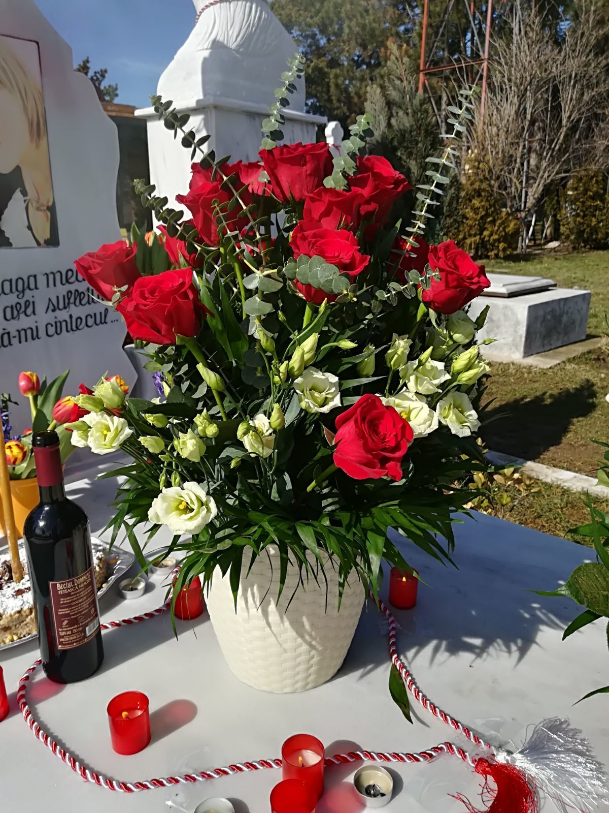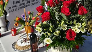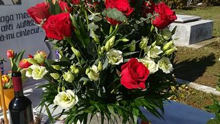 Si aici, preotul a tinut o slujba de pomenire, a sfintit mormantul si a cantat Vesnica Pomenire, iar cei prezenti au aprins lumanari si au depus multe flori frumoase, de primavara, pe marmura rece si in glastrele de langa cruce.