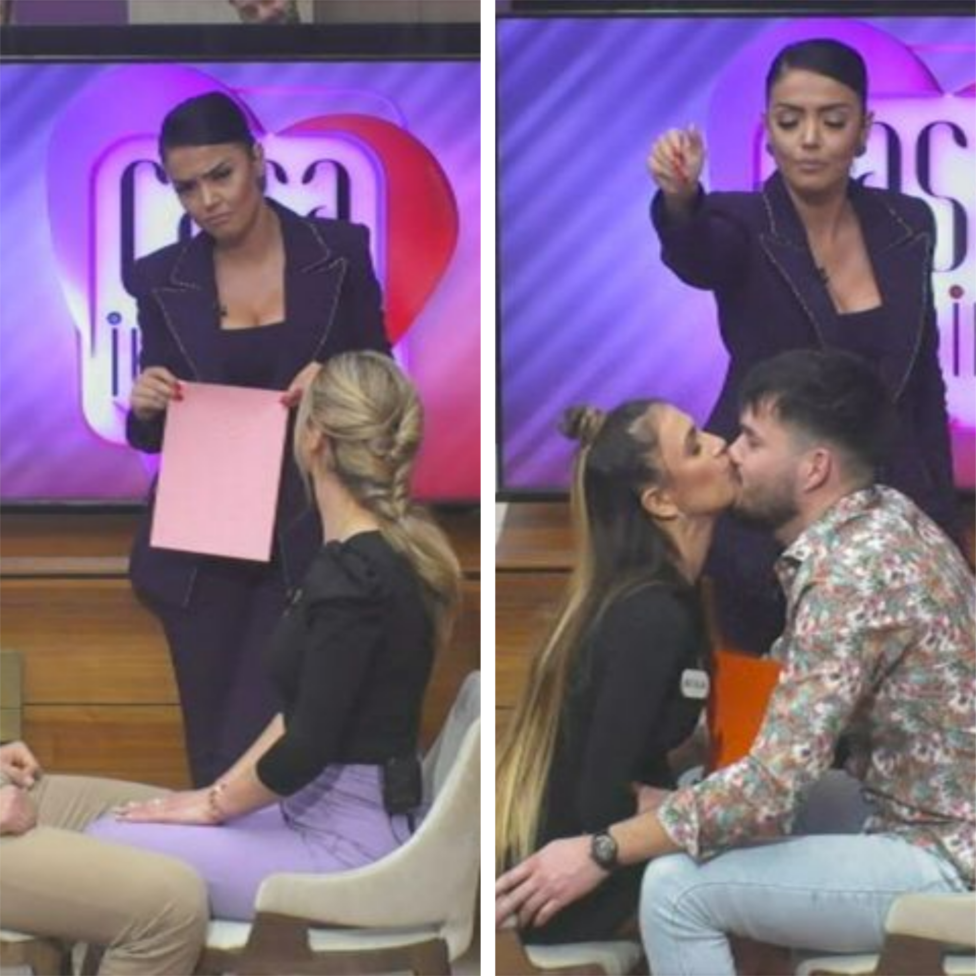 „În momentul în care o să zic 3, 2, 1 și, o să dau drumul acestei foi, evident”, spune Andreea Mantea. Patrick o pupă pe obraz pe Nona, iar a doua oară reușește să o sărute.