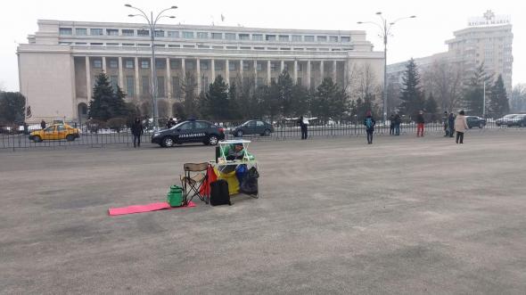 Protestele continua in Capitala. In aceasta dimineata, un barbat a fost fotografiat, singur, in Piata Victoriei.