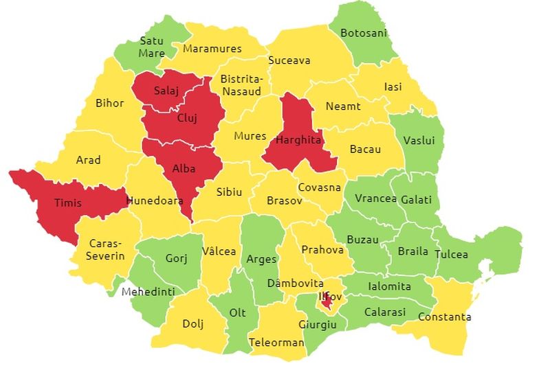 Sunt șase județe intrate în zona roșie care impune adoptarea de măsuri restrictive suplimentare.