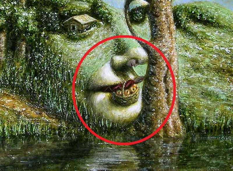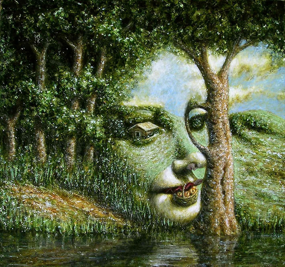 Suprapusă în aceeași imagine este fața unei femei, cu chipul luminos, un fel de "mama natură". Nu toată lumea o vede din primul moment, dar chiar și aceștia din urmă o pot sesiza dacă se uită cu atenție.
