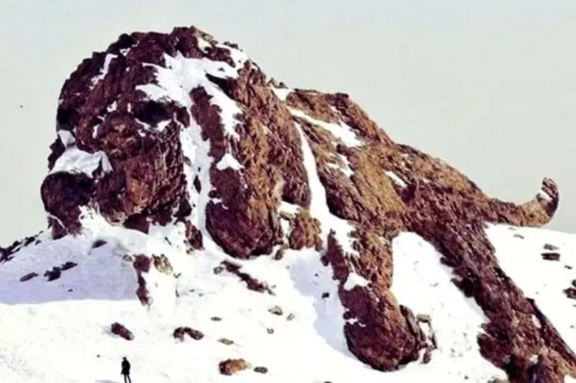 Imaginea înfățișează fie o priveliște cu munți stâncoși acoperiți de zăpadă, fie un câine mare întins pentru a adormi. Tu ce vezi în fotografie?
