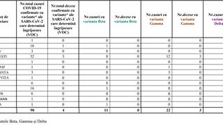 Până în prezent a fost înregistrat un singur deces cu varianta Delta: o persoană de sex feminin, în vârstă de 72 de ani, din jud. Argeș, având condiții medicale pre-existente și nevaccinată anti-SARS-CoV-2.