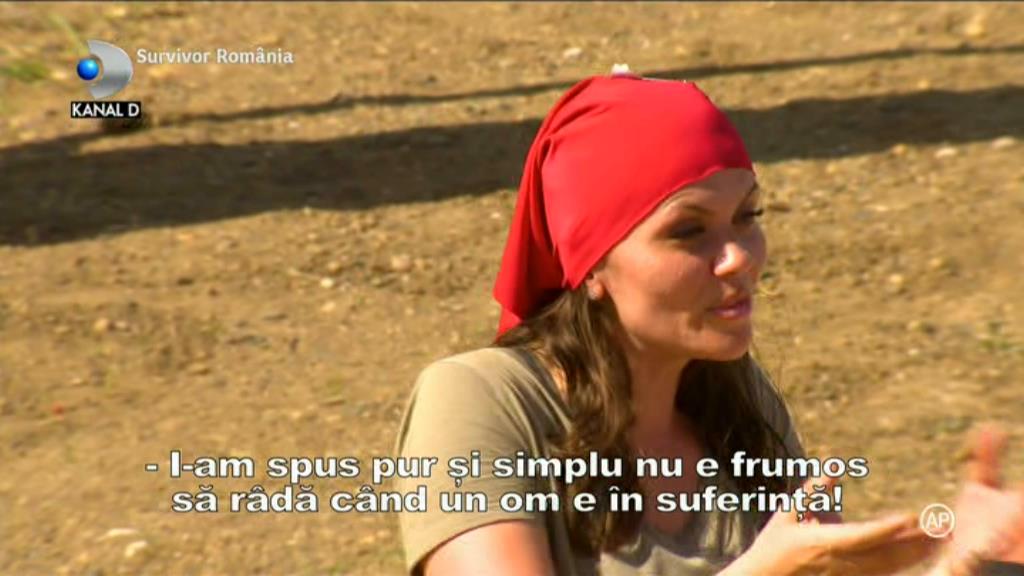 „Să stai să râzi ca fraierul când un om suferă, trebuie să fii chiar... Nu contează dacă râde de el sau nu. Nu ai voie să râzi când un om e în suferință!”, a spus Cristina Șișcanu, supărată. Colegii de echipă au încercat să o calmeze, spunându-i să nu intre în conflict cu Războinicii.