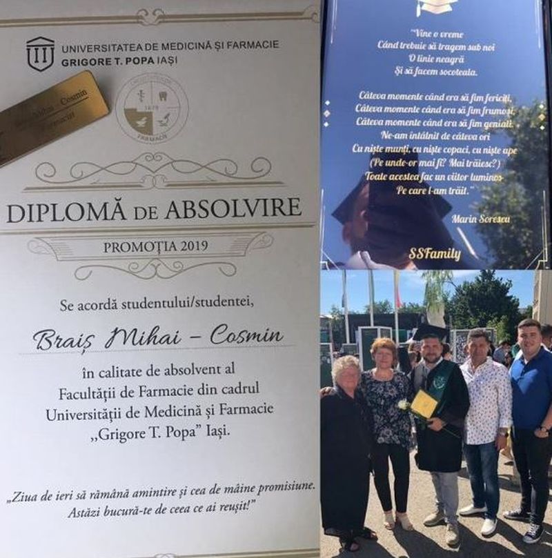 Tânărul a absolvit în acest an Facultatea de Farmacie din cadrul UMF Iaşi şi urma să susţină în aceste zile examenul de licenţă.