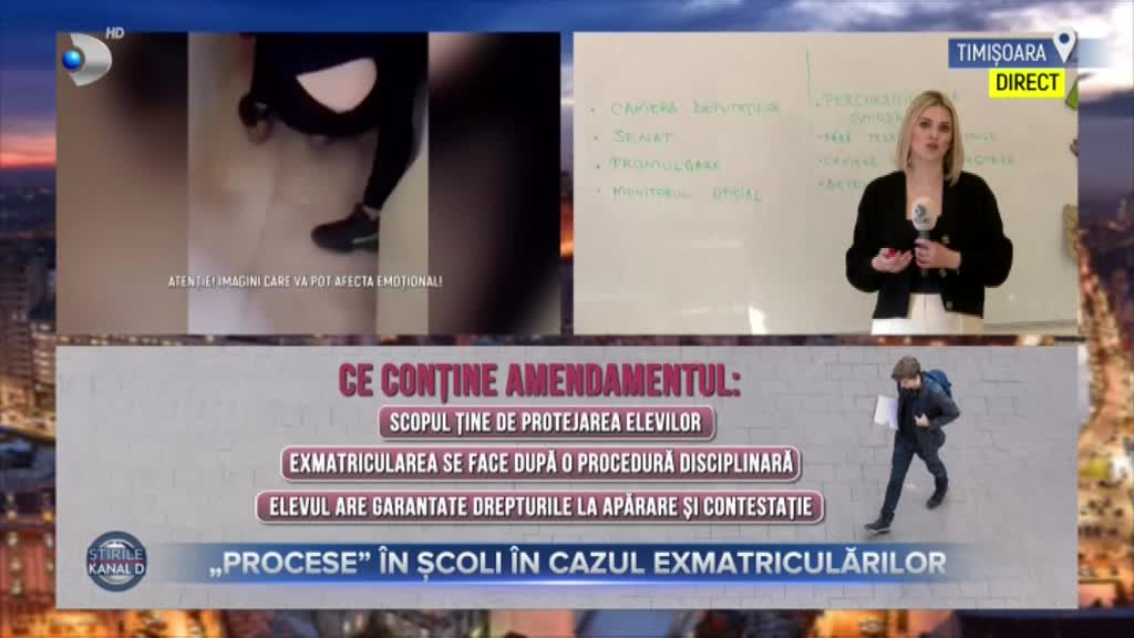 Stirea "”Procese” în școli în cazul exmatriculărilor" difuzata in cadrul grupajului informativ Știrile KANAL D din 21 April 2023.