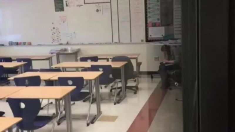 Unui elev i s-a părut extrem de ciudată cererea, așa că a decis să o înregistreze pe profesoară prin geamul ușii.