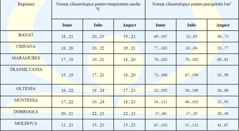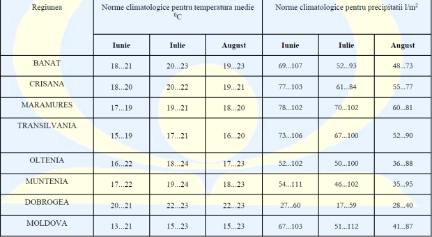 In luna august, temperatura aerului se va situa peste medie in sud-est si local in sud si in est, iar in rest valorile termice vor fi apropiate de normal.