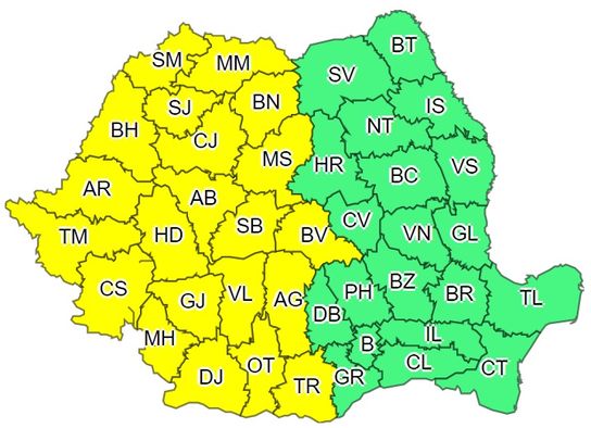 În intervalul 20 august, ora 12:00 – 22 august, ora 10:00 vor exista perioade cu instabilitate atmosferică accentuată, la început în Banat, Oltenia și în zonele montane, apoi în extindere în toată jumătatea vestică a teritoriului.