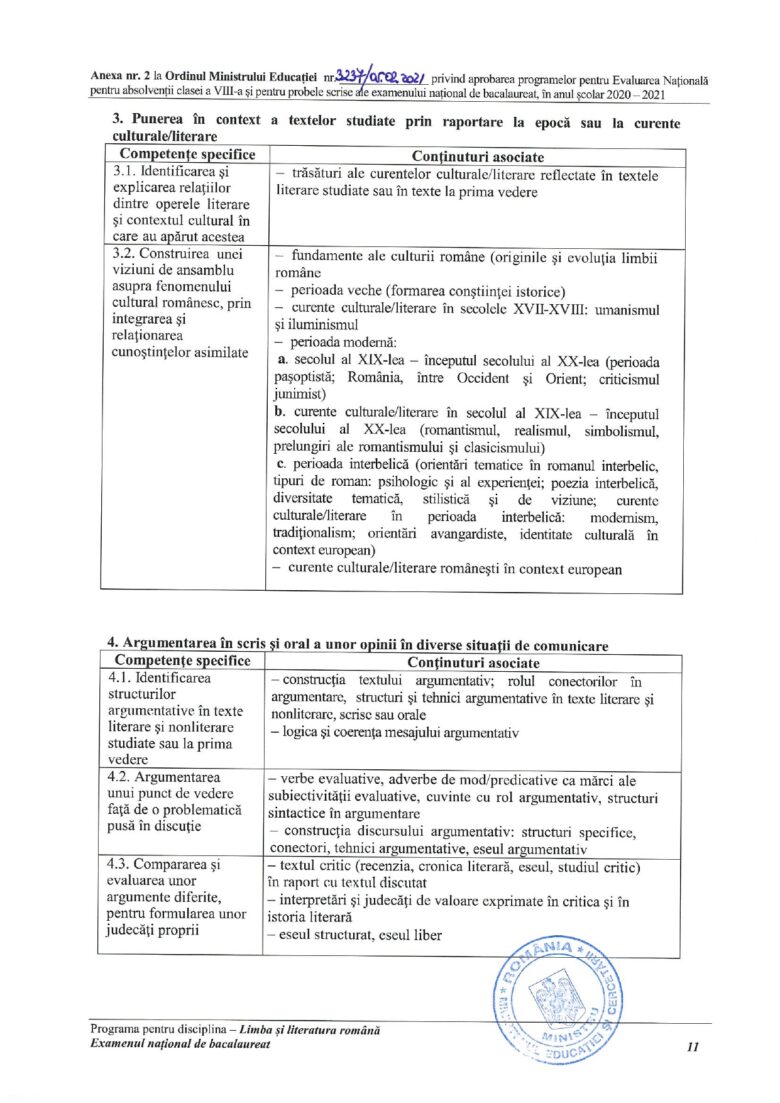 3 din 7 | Programa pentru Bacalaureat 2021 la Limba și literatura română.