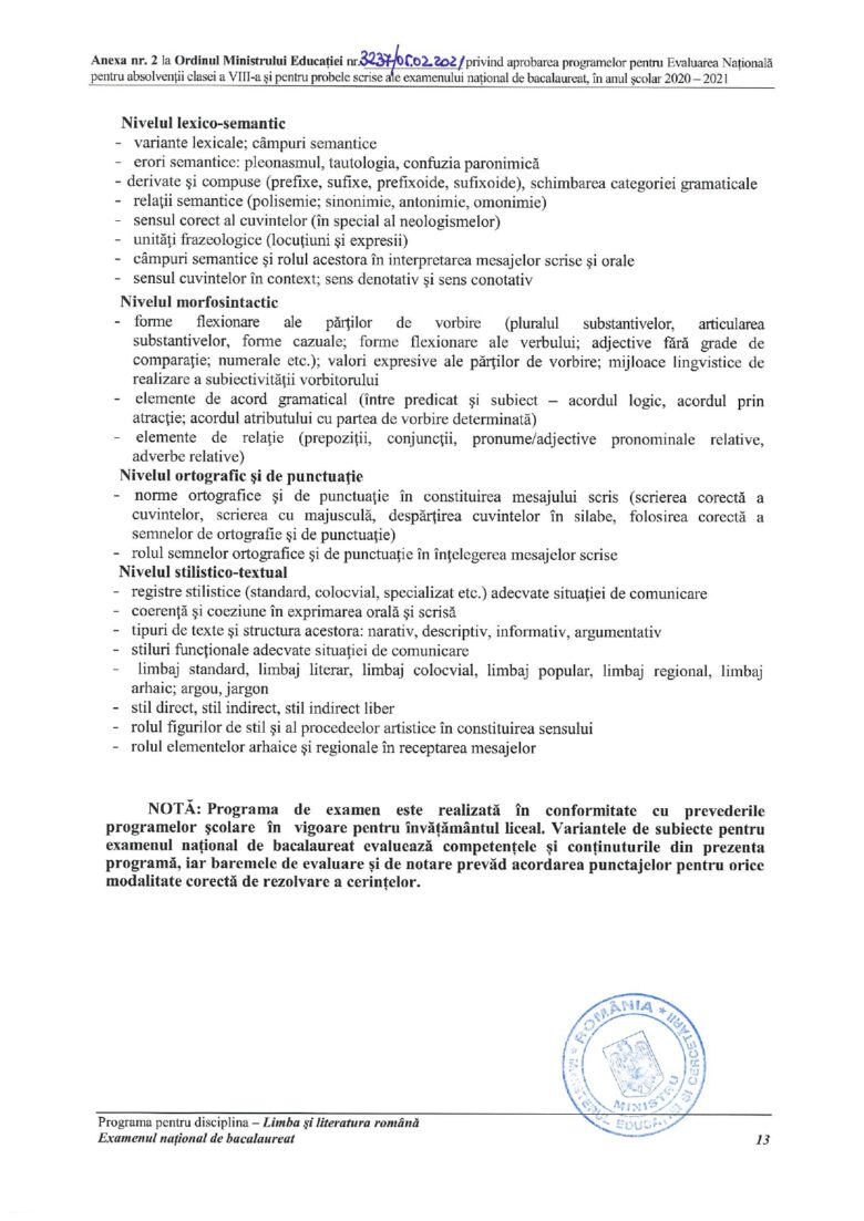2 din 7 | Programa pentru Bacalaureat 2021 la Limba și literatura română