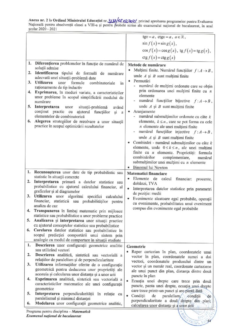 3 din 8 | Programa pentru Bacalaureat 2021 la Matematică