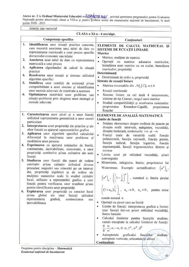4 din 8 | Programa pentru Bacalaureat 2021 la Matematică