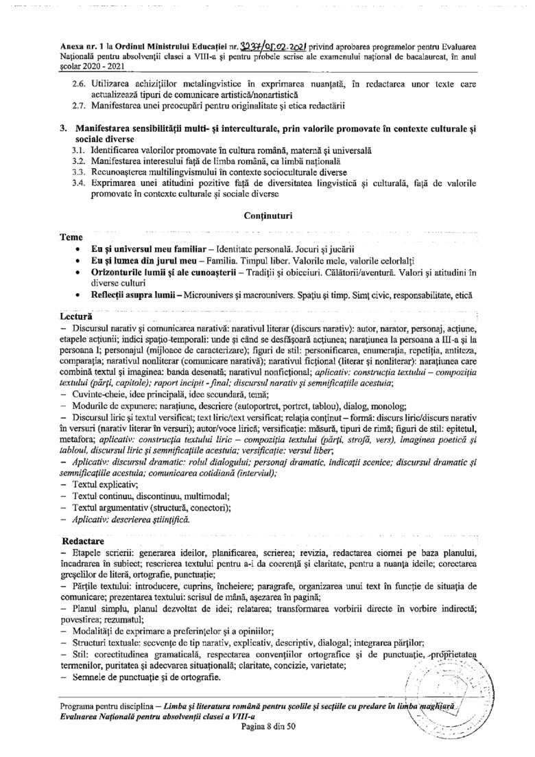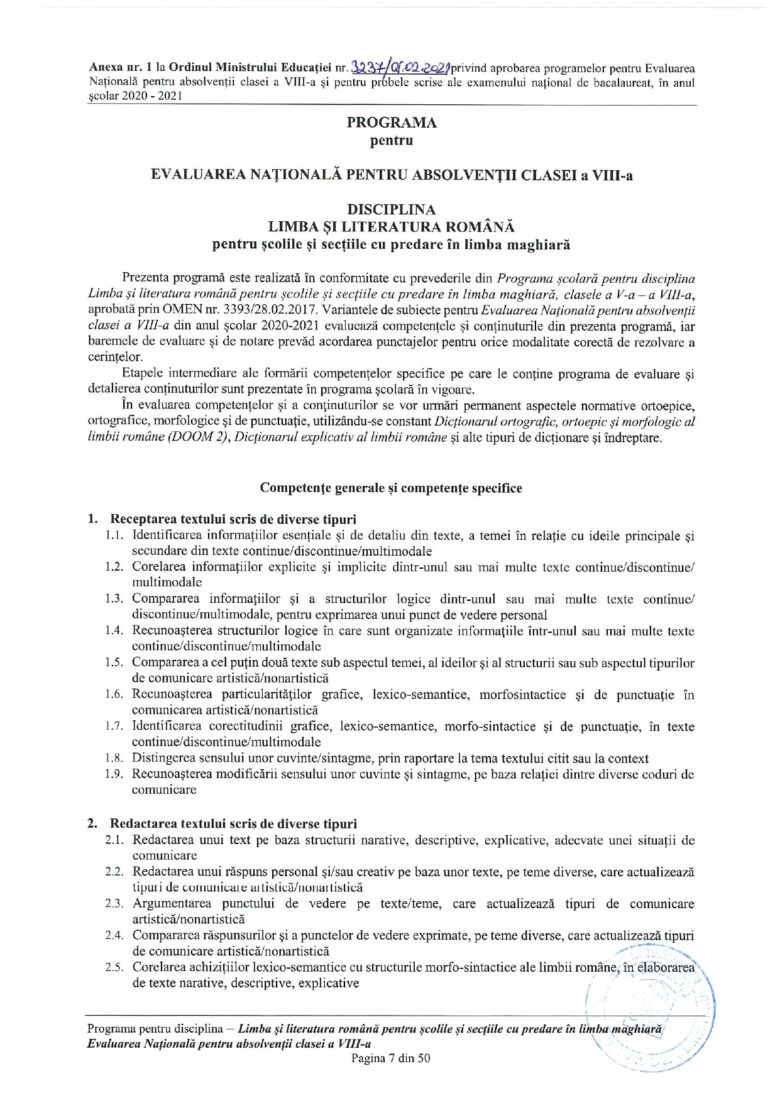 2 din 4 | Programa pentru Evaluarea Nationala 2021 la Limba și literatura maternă