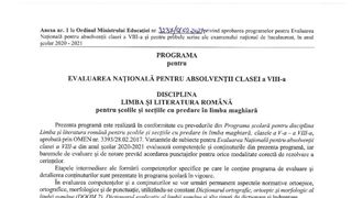 Programa pentru limba maternă de la Evaluarea Națională de clasa a VIII-a a fost publicată în Monitorul Oficial nr 125 bis. Astfel elevii de clasa a VIII-a vor susține examenul final după o programă care va fi modificată de către Ministerul Educației.
