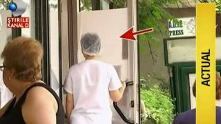 Imaginile sunt filmate cu o camera ascunsa, astazi la orele pranzului. Doar pe o parte din ferestrele cofetariei sunt lipite hartii de culoare alba. La geam insa, clientii cumpara de zor. Pe usa, un afis ne informeaza ca este deschis. Intram!