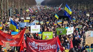 Peste o sută de mii de oameni au ieșit duminică pe străzile din centrul Berlinului pentru a protesta împotriva intervenției militare ruse în Ucraina. Protestul a avut ca motto cuvintele: „Opriți războiul. Pace pentru Ucraina și toată Europa”,
