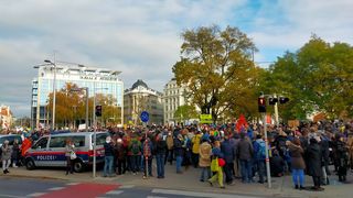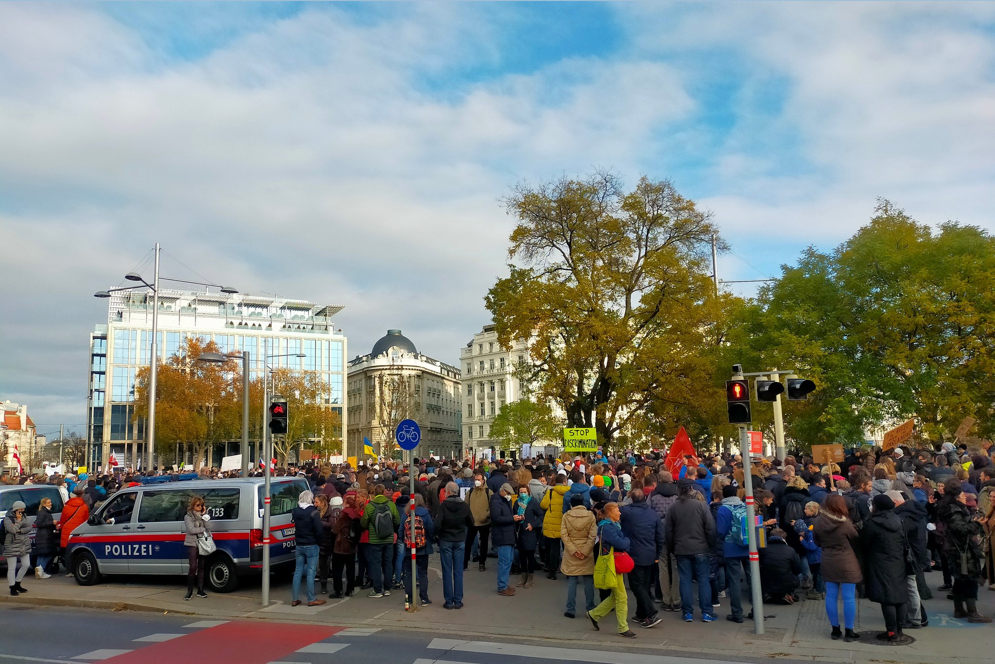Manifestaţia a fost organizată la apelul partidului de extremă dreapta FPÖ și au avut loc mici incidente între manifestanți și forțele de ordine. Mulţimea, adunată în inima capitalei austriece, lângă cancelarie, a afişat pancarte care denunţă „Dictatura corona” şi „Nu divizării societăţii”.