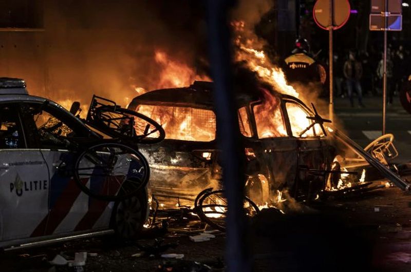 O mulţime de protestatari au incendiat vineri seară în Rotterdam maşini şi au aruncat cu pietre în forţele de poliţie care au răspuns cu împuşcături şi tunuri de apă pe măsură ce protestele împotriva măsurilor COVID-19 au devenit violente, informează Reuters.
