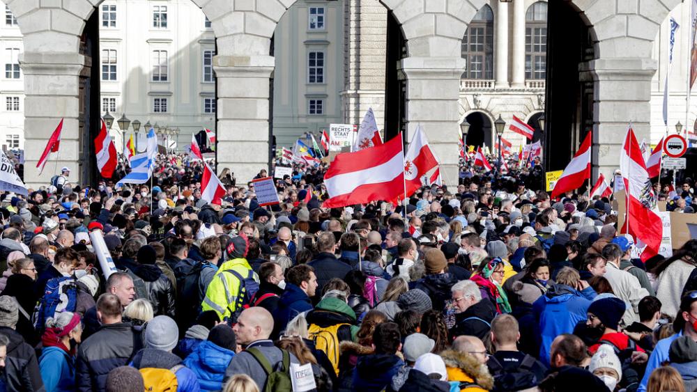 Mii de manifestanţi s-au strâns sâmbătă, la Viena, pentru a protesta împotriva reintroducerii lockdown-ului şi a vaccinării obligatorii, măsuri anunţate cu o zi în urmă de către guvernul austriac în încercarea de a limita răspândirea pandemiei de COVID-19.