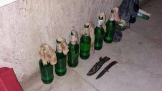 Pe filmare se vede momentul in care unul dintre protestatari este prins cu cocktailuri molotv asupra lui.