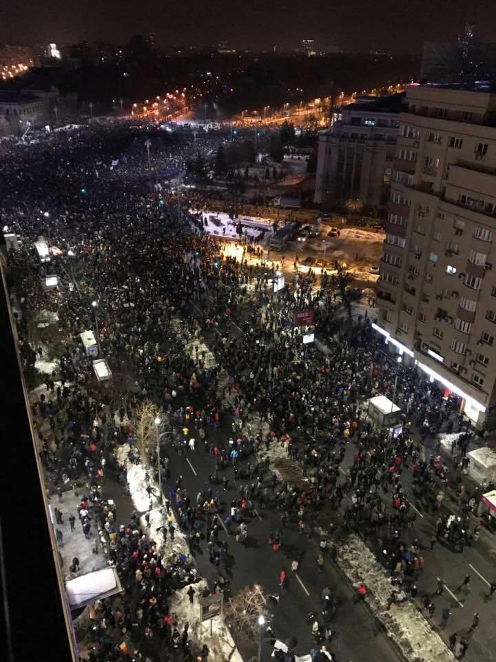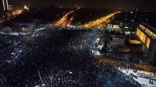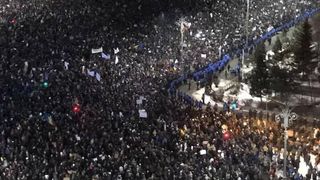 Peste 200.000 au protestat, miercuri seara, in Piata Victoriei, cerand demisia Guvernului, dupa adoptarea, in noaptea de marti spre miercuri, a Ordonantei de Urgenta privind modificarea codurilor penale. Protestul a escaladat in momentul in care mai multi oameni, care fac parte din galeriile echipelor de fotbal, au aruncat torte spre jandarmi, care au reactionat cu gaze lacrimogene. ##VIDEO45159##