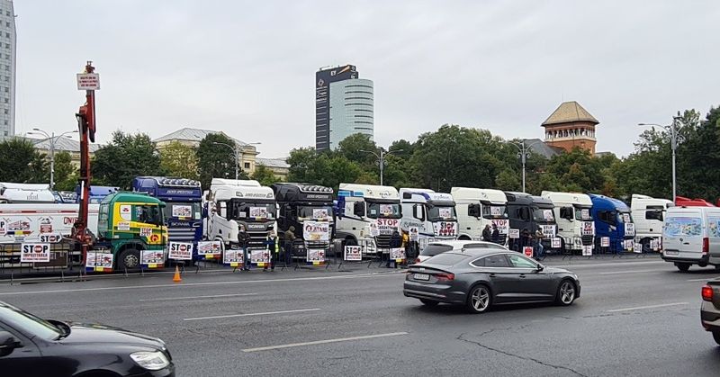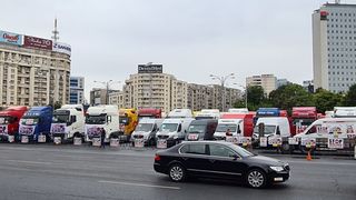 Transportatorii protestează, miercuri, în fața Guvernului, solicitând eliminarea taxelor retroactive pe diurna șoferilor, precum și reducerea tarifelor la RCA.