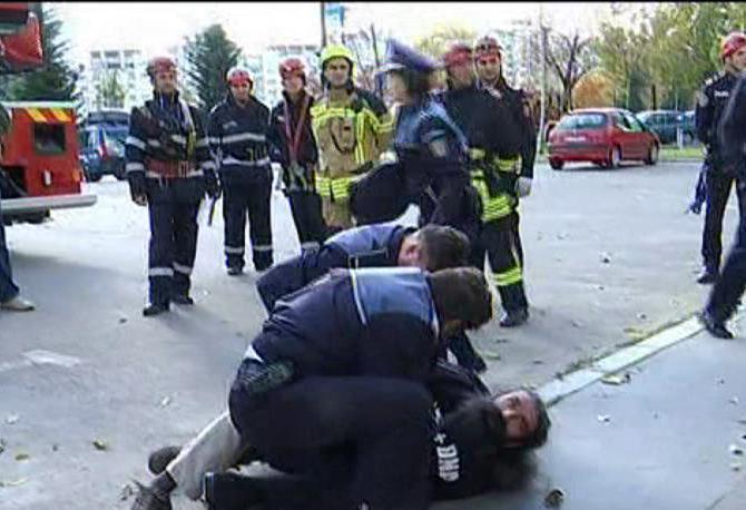 Oare de ce urla omul acesta cat il tin plamanii si de ce se zvarcoleste asa in mainile politistilor.