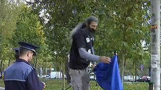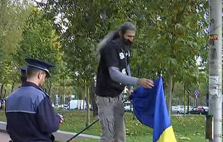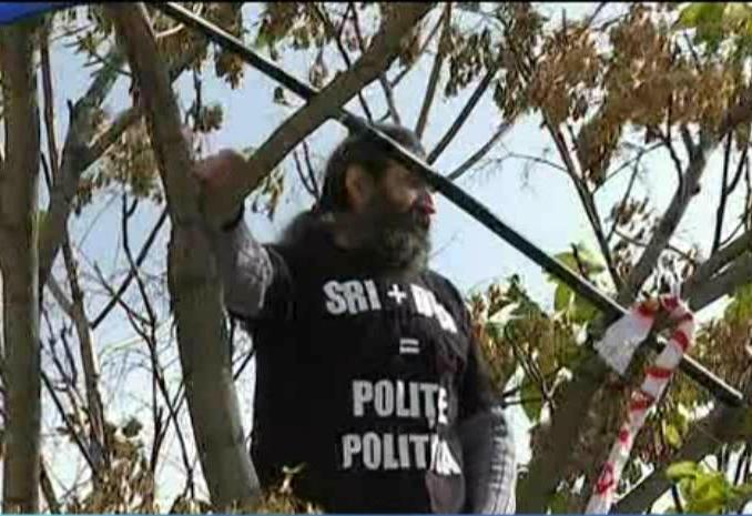 De la ce a inceput circul? Ei bine, cu patru ore inainte de interventia politistilor, barbatul cunoscut de toata lumea drept stegarul dac, s-a urcat intr-un copac si a inceput sa-si fluture steagul in semn de protest. Revendicarile nu vizau ceva concret.