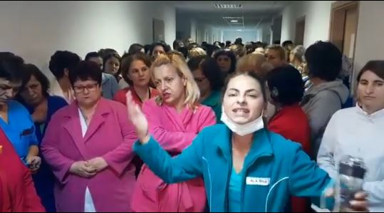 Angajaţii Spitalului din Craiova au întrerupt spontan lucrul şi au ieşit iniţial pe scările din faţa spitalului, ulterior continuând protestul pe holurile unităţii sanitare.