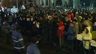 La ora transmiterii acestei stiri, mai sunt aproximativ 300 de persoane care cer demisia presedintelui, sufla in vuvuzele si poarta pancarte antiprezidentiale si proguvernamentele. "Presedintele nostru este un instigator, de-asta protestez", a spus o doamna in timp ce pleca spre casa, potrivit News.ro.
