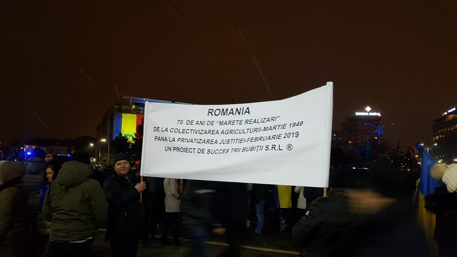 Protestatarii au scandat mai multe mesaje prin care si-au aratat nemultumirea. “Justitie, nu coruptie”, “Tudorel, demisia!”, “Abrogati si plecati”, au fost cateva dintre mesajele protestatarilor.